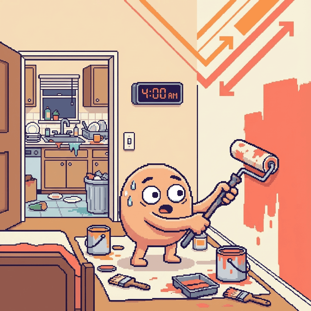 ✓ You started out cleaning the kitchen and washing up. Somehow you're now painting your bedroom at 4am. The kitchen? Still dirty. The dishes? ( Hmmm... )
