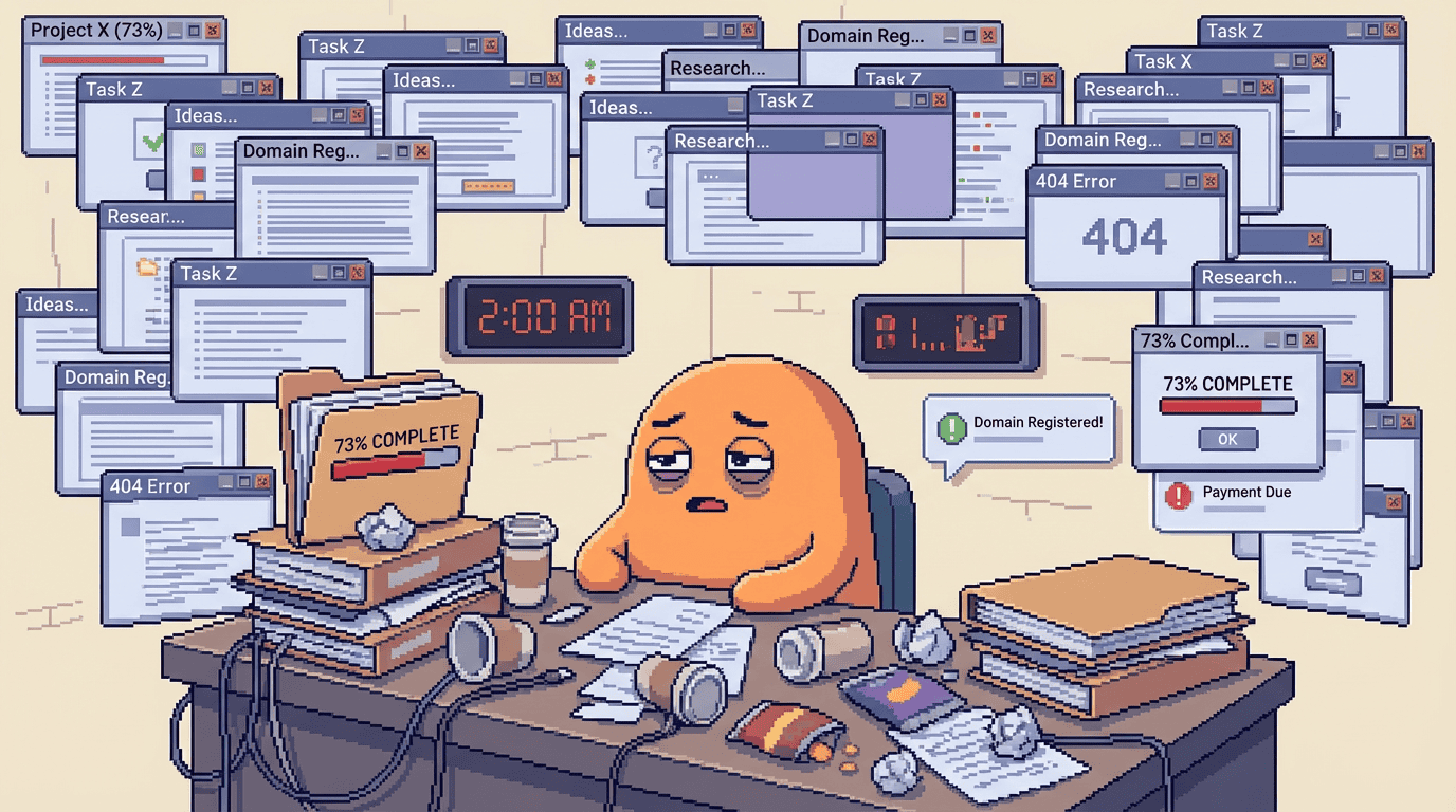 ✓ You have 17+ unused domain names on auto-renew that represent "the next big thing" you were going to launch at 2am