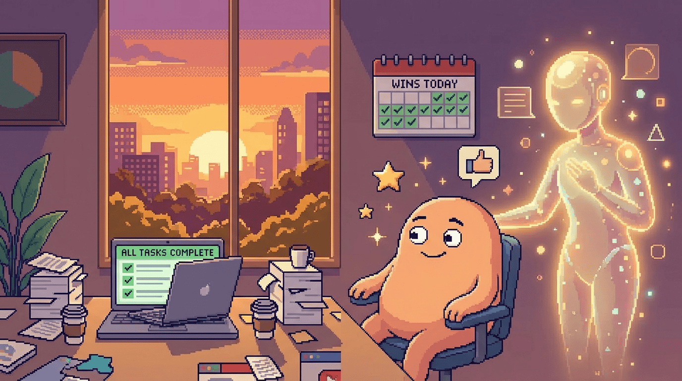 "End-of-day wrap. Here's what I delivered today: [list]. What should I celebrate?"